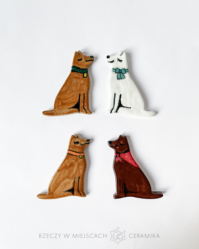 ✨ Tworzone ręcznie ceramiczne magnesiki malowane farbkami i pokryte szkliwem transparentnym. Każdy z nich jest wyjątkowy, ręcznie lepiony i dekorowany, z miłości do uroczych stworzonek (i ich uroczych dodatków). Z tyłu każdego pieska przytwierdzony został silny magnes, zapewniający pewne trzymanie się powierzchni do której zostanie przyczepiony.